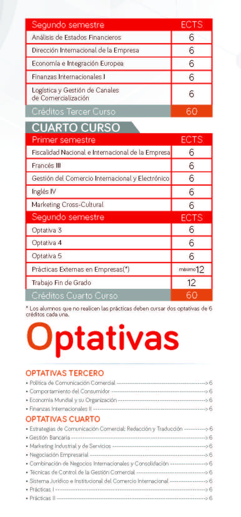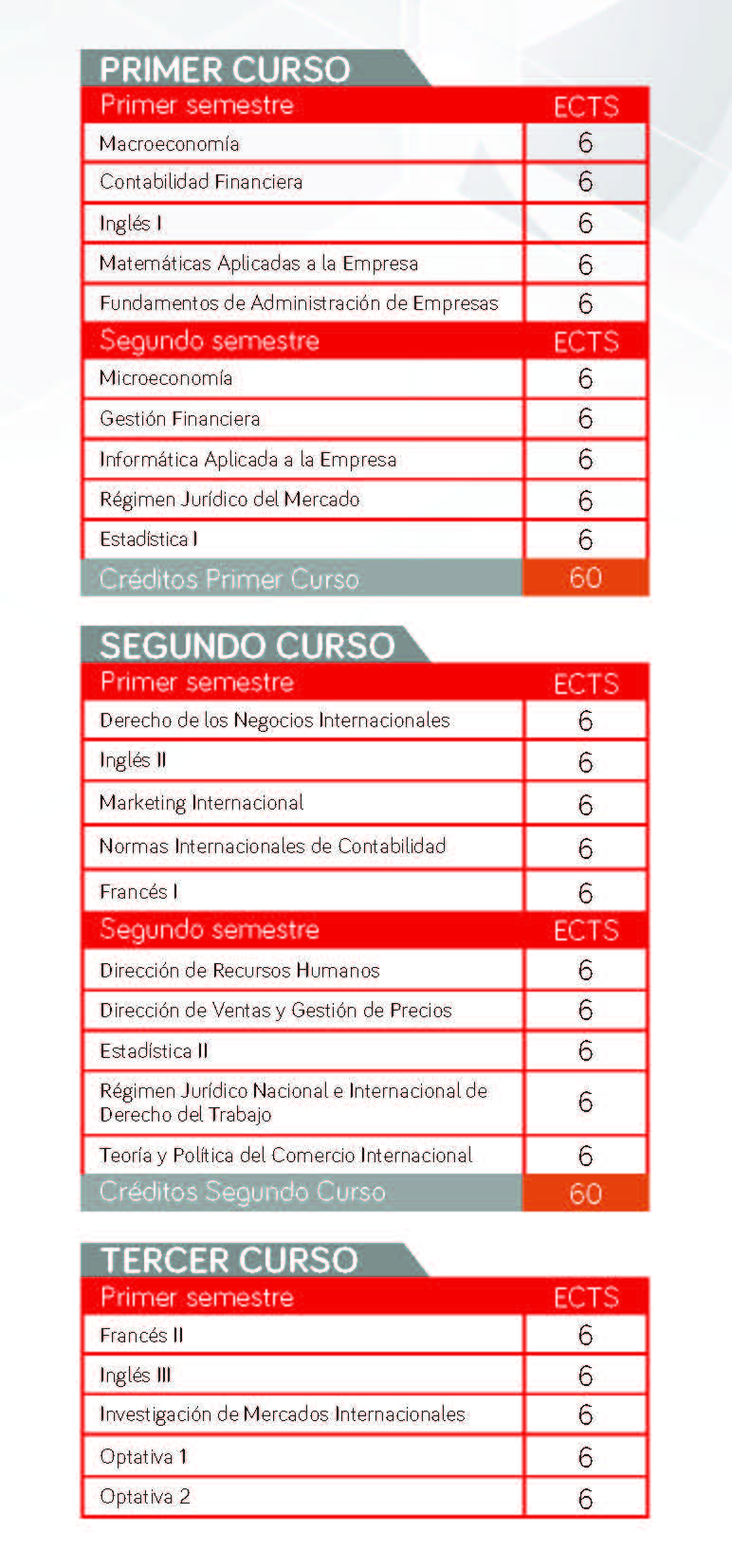 IMPORTANTE: En el grado en comercio internacional, los estudiantes deben cursar al menos un semestre en el extranjero.