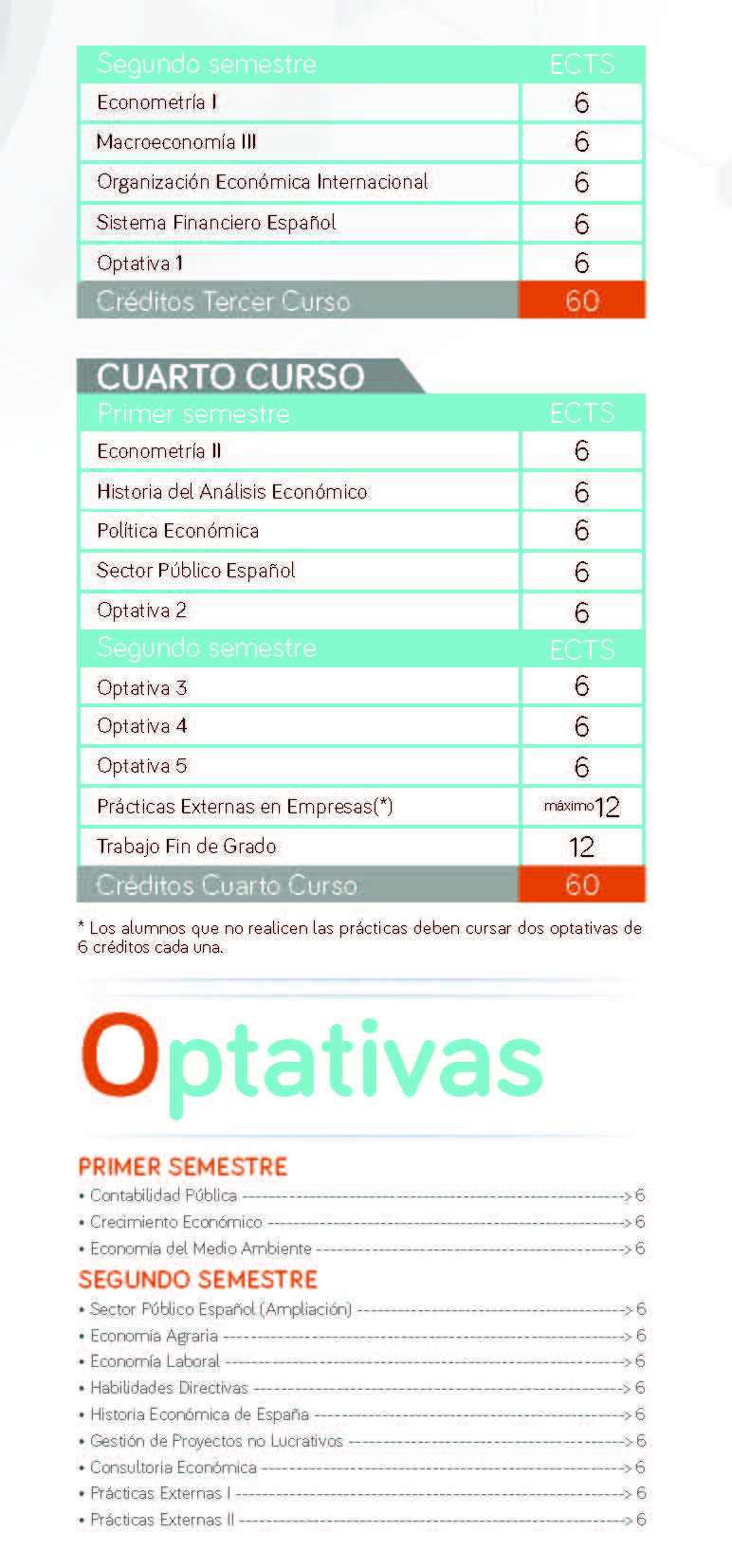 Coordinadora del Título de Grado: Ana Salvador Chamorro (ana.salvador@unileon.es) ~ Despacho nº 112 Coordinadores de curso Curso 1º: Alfredo Macías Vázquez ~ Despacho nº 123 Curso 2º: Marta Vega Gómez ~ Despacho nº 116 Curso 3º: Carlos Arias Sampedro ~ Despacho nº 109 Curso 4º: Cristina Álvarez Folgueras ~ Despacho nº 110 Comisión de Coordinación Grado en Economía Resolución 9271 (BOE 126, 27 mayo 2011)| Tríptico Informativo | |